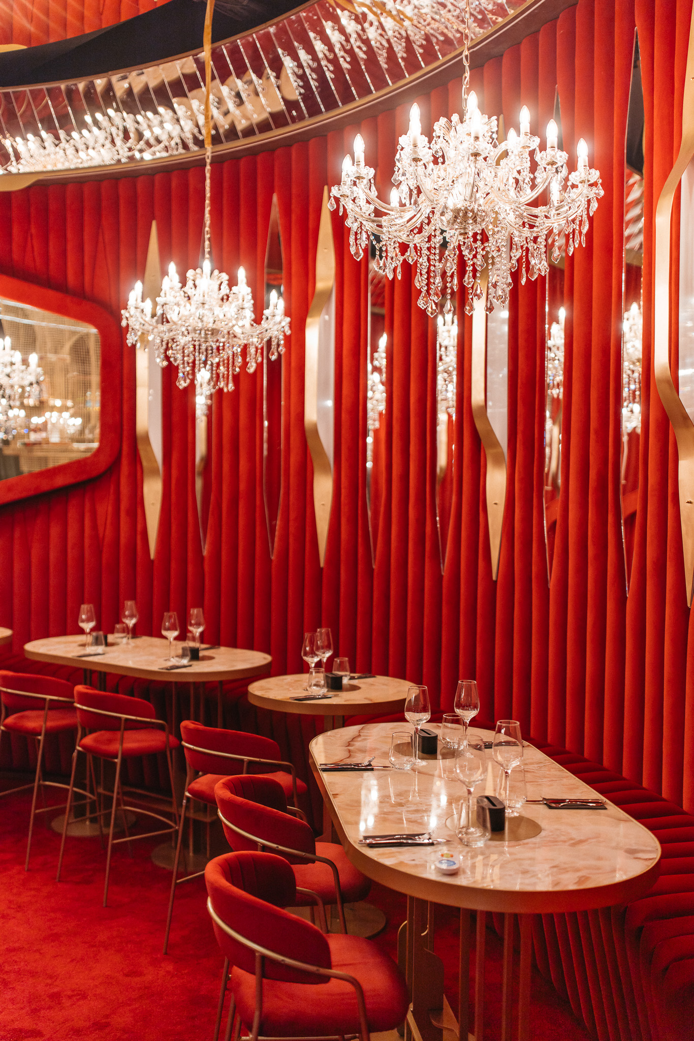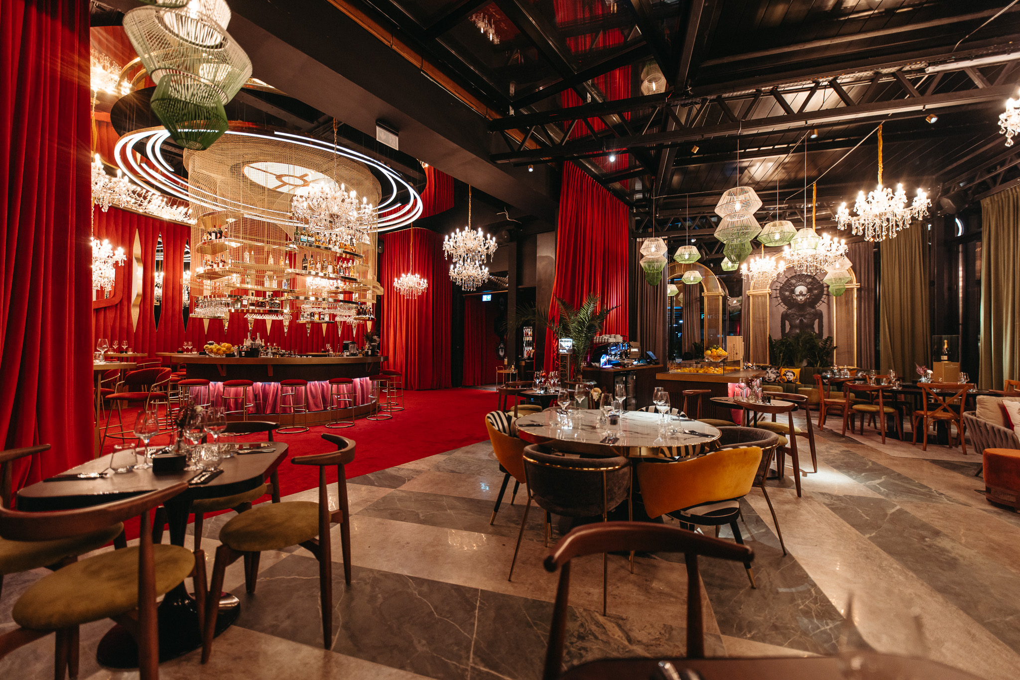 The interior exudes sophistication, with lavish decor, ambient lighting, and a chic layout that caters to both intimate dinners and lively events.